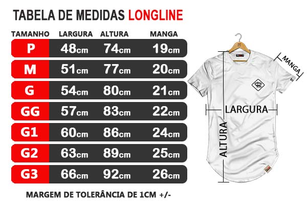 - Modelo Longline Barra Redonda: As camisetas possuem um corte diferenciado com o comprimento levemente mais longo com barra redonda dando um estilo a mais a sua elegância.
